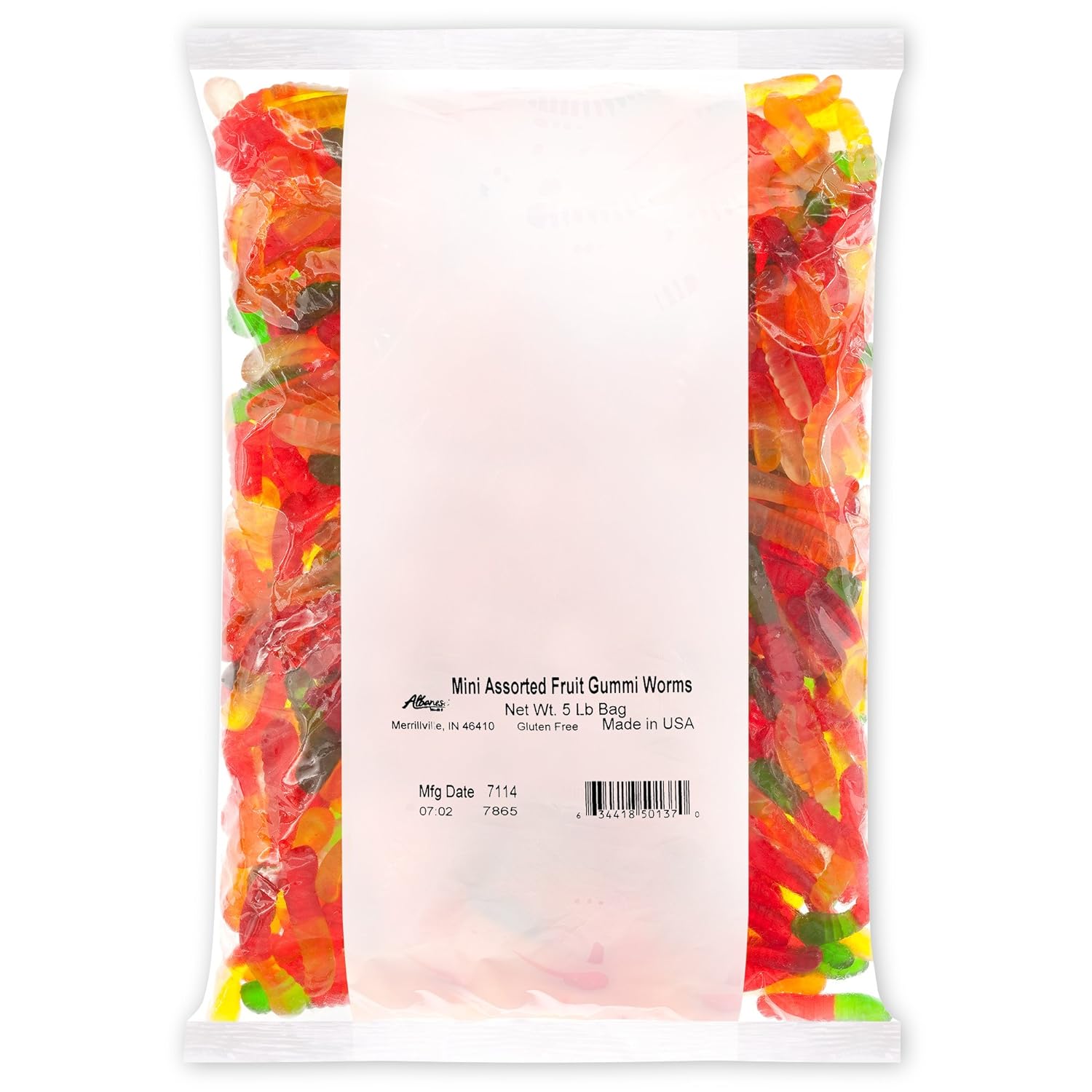 - Mini Gummi Worms: Taste the difference of fresh fruit flavors and a deliciously soft chew you won't find with other gummy worms; Each 5 pound bulk bag includes 5 delicious fruit flavors and makes the perfect snack